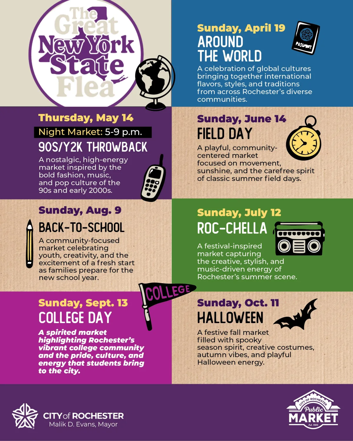 From vibrant themed gatherings under the sun to tight-knit indoor pop-ups in Rochester, NY — the Great NYS Flea celebrates local makers, small businesses, art, fashion, food, and creative energy in one unforgettable experience.